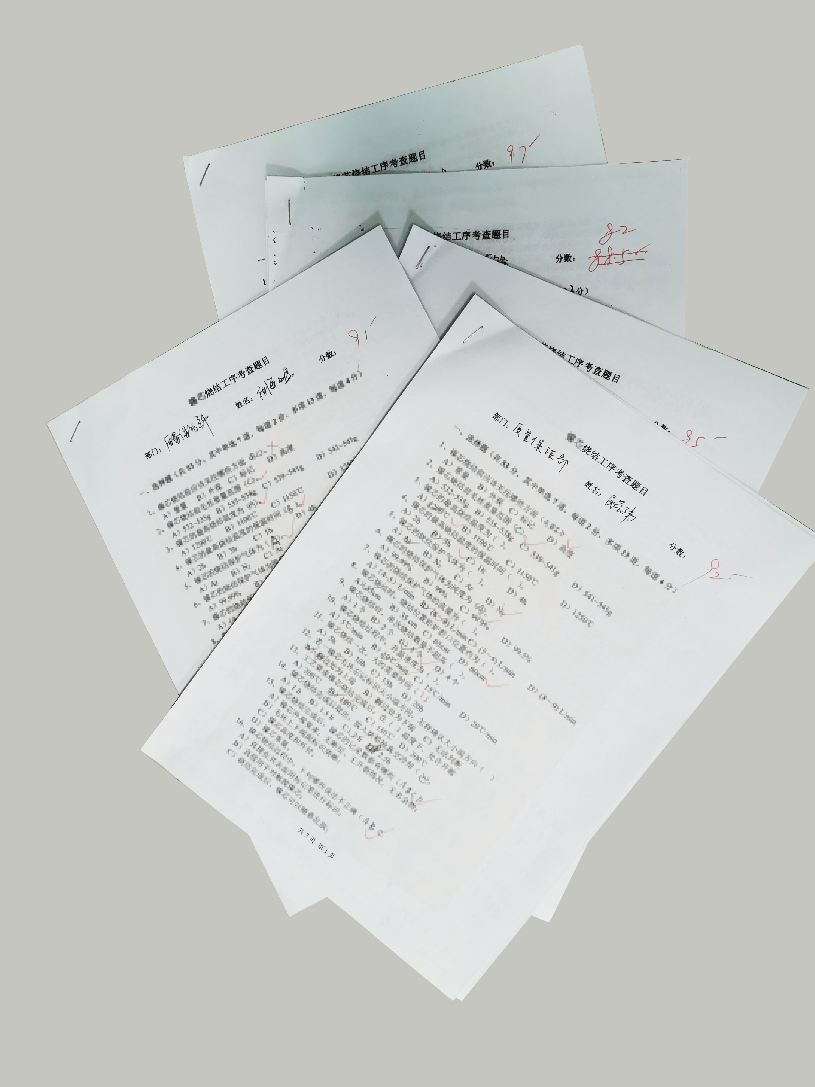 為了提升過(guò)程質(zhì)量,促使過(guò)程控制人員及操作人員熟知并掌握零件生產(chǎn)過(guò)程的關(guān)鍵點(diǎn),85日,公司組織檢驗(yàn)人員、操作人員進(jìn)行了燒結(jié)工序的質(zhì)量控制點(diǎn)考試??键c(diǎn)涉及生產(chǎn)過(guò)程的人、機(jī)、料、法、測(cè)等六個(gè)方面,使得從事燒結(jié)工序的操作人員與質(zhì)量控制人員對(duì)本工序的關(guān)鍵點(diǎn)及注意事項(xiàng)進(jìn)行了一次全面的復(fù)盤(pán),為后期開(kāi)展的燒結(jié)工序取得良好的過(guò)程控制奠定基礎(chǔ)。