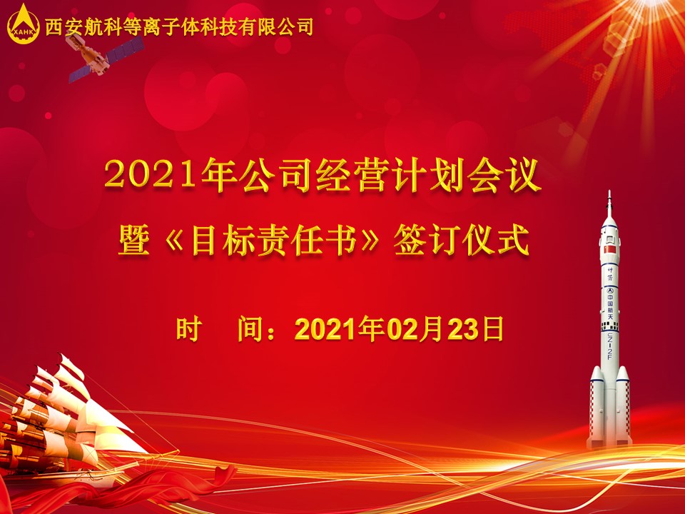 2021年2月27日下午14:30,西安航科等離子體科技有限公司組織全員召開2021年公司經(jīng)營計劃會議暨《目標責任書》簽訂儀式。