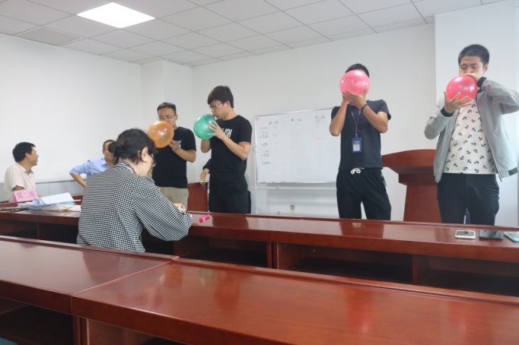 活動三:9月21日組織開展了質(zhì)量、安全聯(lián)合知識競賽,讓本次質(zhì)量月的活動走向高潮。本次知識競賽由質(zhì)量安全部組織,公司各部門均積極報名,五個部門共12人參與了本次知識競賽。競賽分為個人必答題、搶答題、小組必答題、風(fēng)險題。參賽成員在賽前做了充分準(zhǔn)備,競賽過程中得分你追我趕,分外激烈。尤其在搶答題環(huán)節(jié),各隊代表使盡全力吹爆氣球爭得答題權(quán),出現(xiàn)了氣球久吹不爆、或者一不留神氣球呼嘯著飛上天的有趣景象,引起場下觀眾陣陣開懷大笑以及加油叫好,但參賽隊員絞盡腦汁的思考并未被干擾。風(fēng)險題更是風(fēng)險重重,第一組的的何亮兩次選擇了分值最高的題,并且對答如流,讓本組的分?jǐn)?shù)遙遙領(lǐng)先。主持人王茜對每道題答案進(jìn)行了詳細(xì)講解,另在場的各位均對公司質(zhì)量管理及安全生產(chǎn)要求有了更進(jìn)一步的了解。最終,在多輪必答和激烈搶答、風(fēng)險題爭奪戰(zhàn)后,一等獎——送丈母娘的好禮物“中秋大閘蟹禮券”花落第一組,組員為生產(chǎn)運(yùn)營部何亮、研發(fā)部黃陽飛、趙黨峰;第二組獲得二等獎;第三組和第四組獲得三等獎。