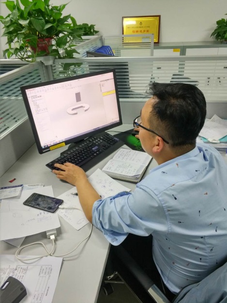 圖為研發(fā)部黃工正在制作加熱裝置