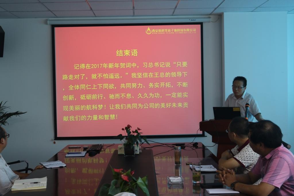 最后董事長(zhǎng)王浩靜做了總結(jié)性的講話(huà),他充分肯定了公司上半年所取得成績(jī),航科人圍繞公司的“1 + 1 + 0.5”產(chǎn)品研發(fā)戰(zhàn)略,在等離子體專(zhuān)業(yè)領(lǐng)域取得的創(chuàng)新性的突破,實(shí)現(xiàn)國(guó)內(nèi)領(lǐng)先;其他領(lǐng)域也實(shí)現(xiàn)了大踏步的邁進(jìn),這一切離不開(kāi)大家的共同努力;展望未來(lái)的152天,王總要求我們堅(jiān)定公司的發(fā)展方向,快速推動(dòng)軍民融合,秉持公司“創(chuàng)新一代 研發(fā)一代 儲(chǔ)備一代 生產(chǎn)一代 服務(wù)一代”的發(fā)展原則,做好新“2.5”,穩(wěn)步促進(jìn)預(yù)研項(xiàng)目;上半年已經(jīng)匆匆而過(guò),他提出一個(gè)創(chuàng)業(yè)型企業(yè)要做什么?作為我們公司,應(yīng)該快速促進(jìn)技術(shù)轉(zhuǎn)化,用有限的資源,做合理的布局,爭(zhēng)取產(chǎn)品的市場(chǎng)化。他希望下半年從組織架構(gòu)和人員配備、管理制度提升、統(tǒng)一思想和優(yōu)勝劣汰、解放思想和適應(yīng)市場(chǎng)發(fā)展、激勵(lì)政策等方面對(duì)公司的管理進(jìn)一步提升;各職能部門(mén)應(yīng)主動(dòng)作為,研發(fā)人員團(tuán)結(jié)協(xié)作,實(shí)現(xiàn)航科的跨越。