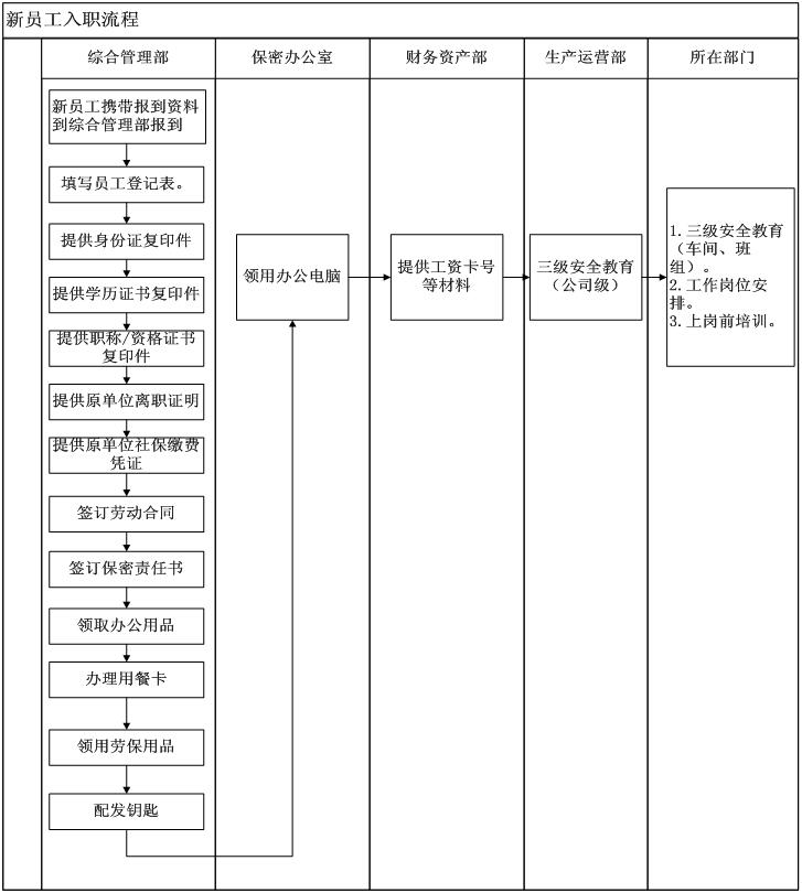 2.按照《新員工入職流程》逐項(xiàng)辦理入職手續(xù)。
